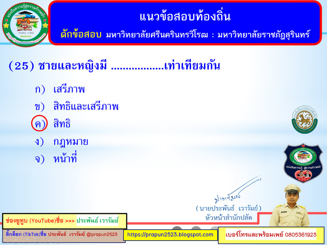 แนวข้อสอบท้องถิ่นชุดแบ่งปันความรู้สู่ความก้าวหน้า **** ห ากต้องการสนับสนุนค่ากาแฟ **** (10-20-30-100 บาท แล้วแต่จะสนับสนุนครับ) #หากต้องการส...