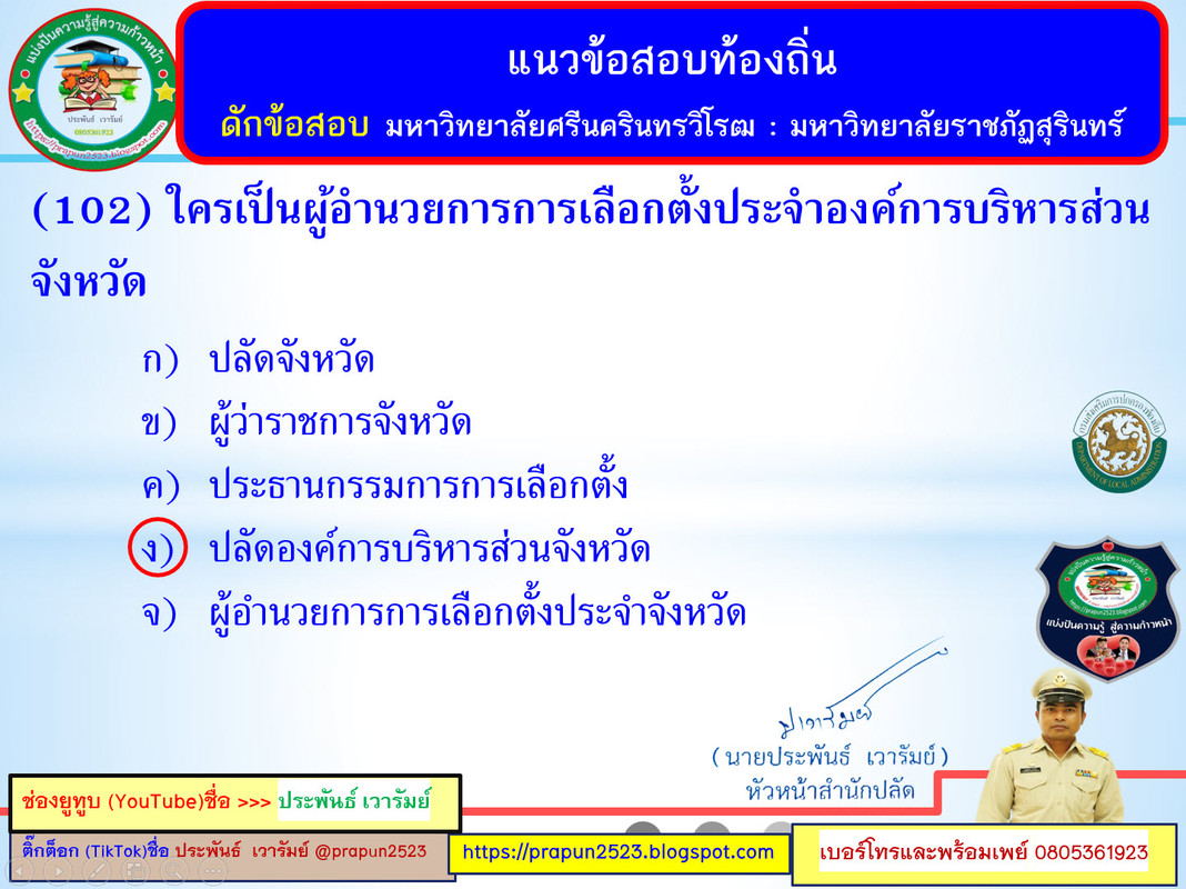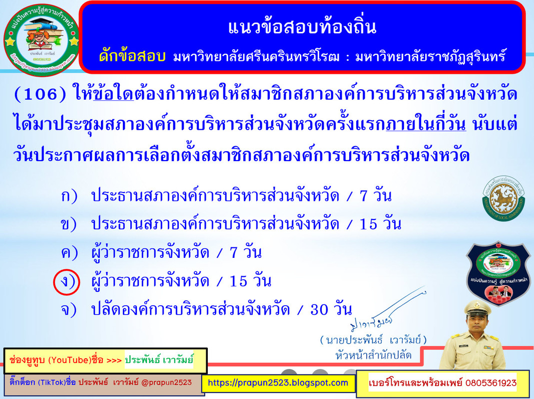 แนวข้อสอบพระราชบัญญัติองค์การบริหารส่วนจังหวัด พ.ศ. 2540 แก้ไขเพิ่มเติมถึงฉบับที่ 5 พ.ศ. 2562 และกฎหมายที่เกี่ยวข้อง