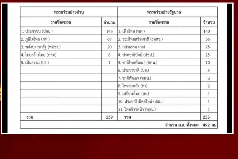 ข้อมูลส.ส. ปัจจุบัน เผื่อออกข้อสอบ